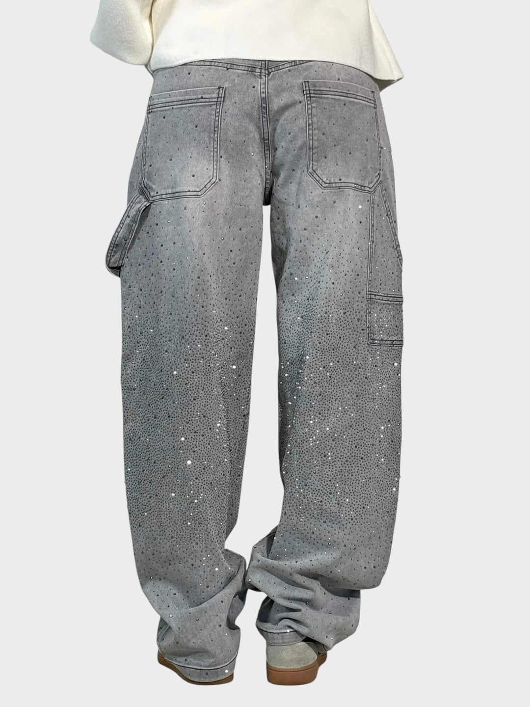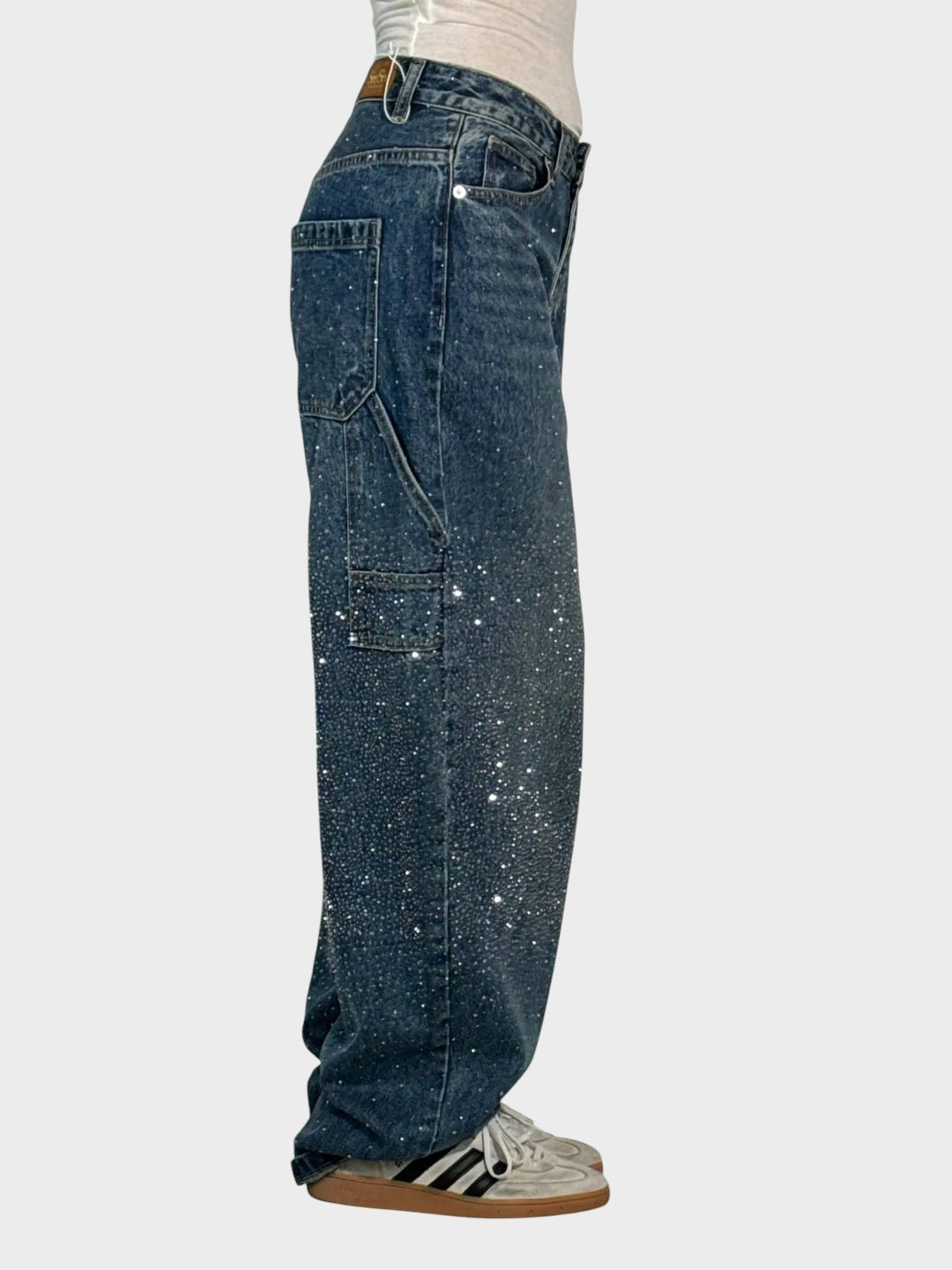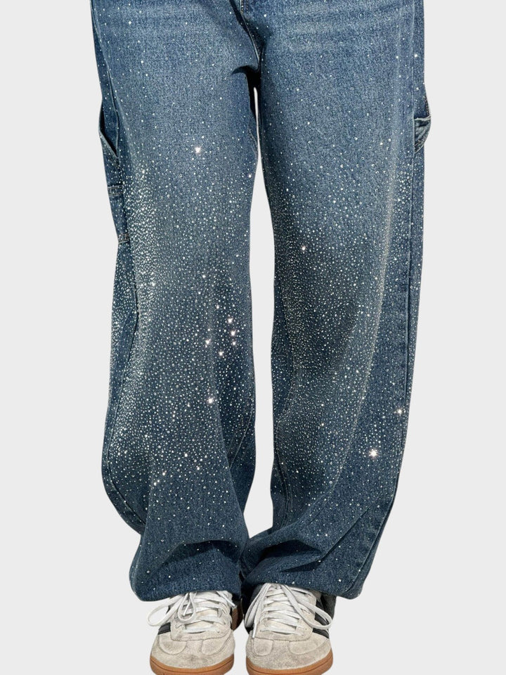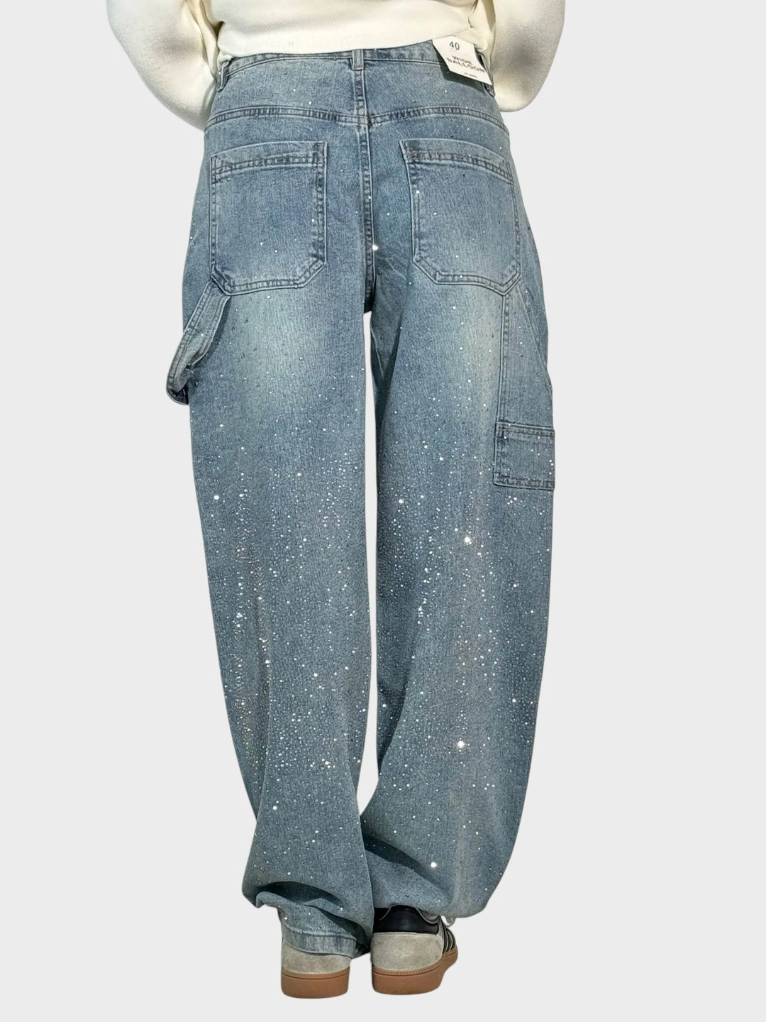 Diese elegant dekorierten Jeans kombinieren zeitlose Eleganz mit modernem Komfort. Glitzernde Details verleihen einen Hauch von Luxus, während der lockere Schnitt eine schmeichelhafte Silhouette schafft. Ideal für stilvolle Alltagsoutfits mit einem einzigartigen Touch.