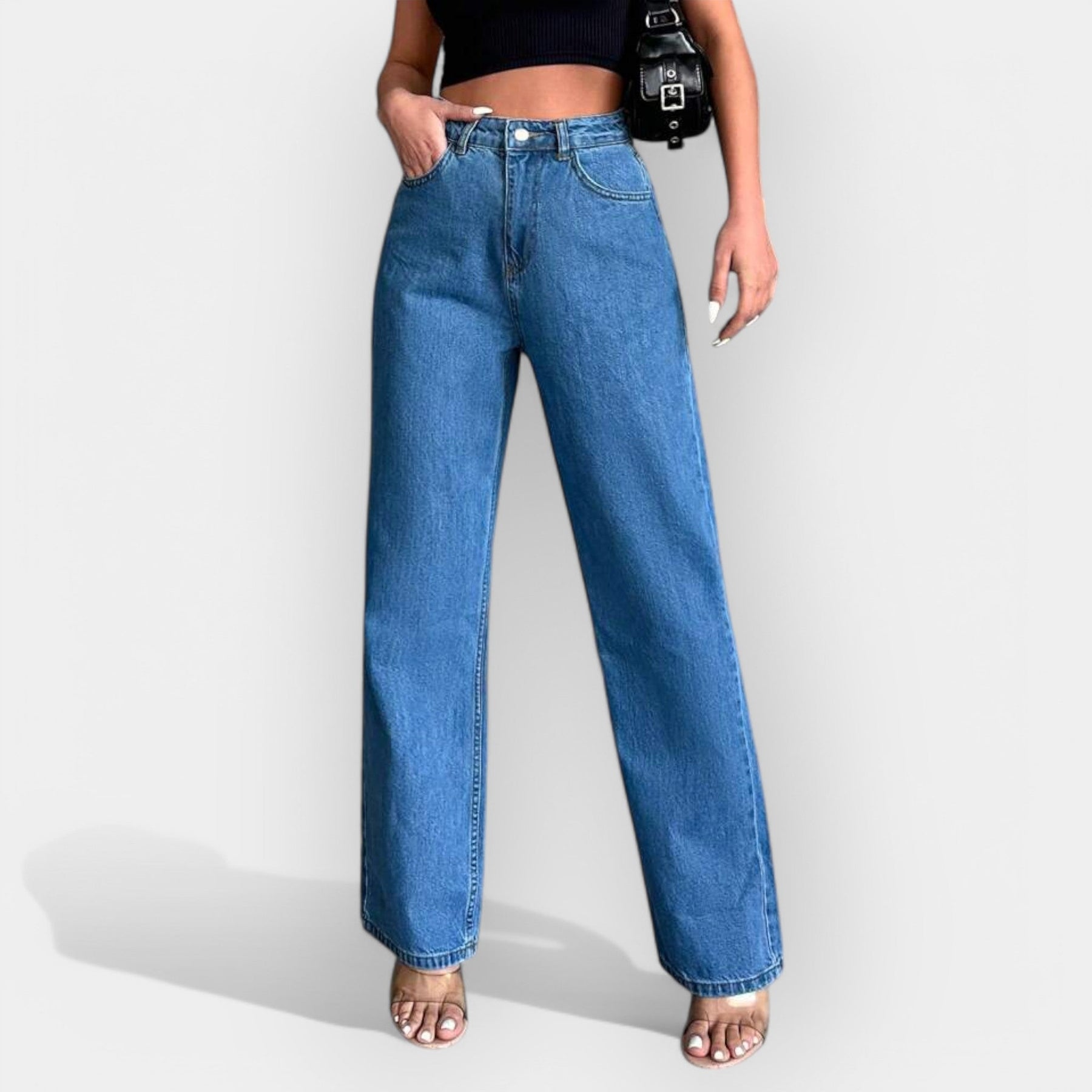 Zeitlos und bequem, diese Jeans kombinieren Eleganz mit täglichem Komfort. Die hohe Taille betont die Silhouette in der Taille, während die weiten Beine Stil und Bewegungsfreiheit gewährleisten. Die ideale Wahl für jeden Anlass – vom lässigen Outfit bis hin zu einem anspruchsvolleren Look.