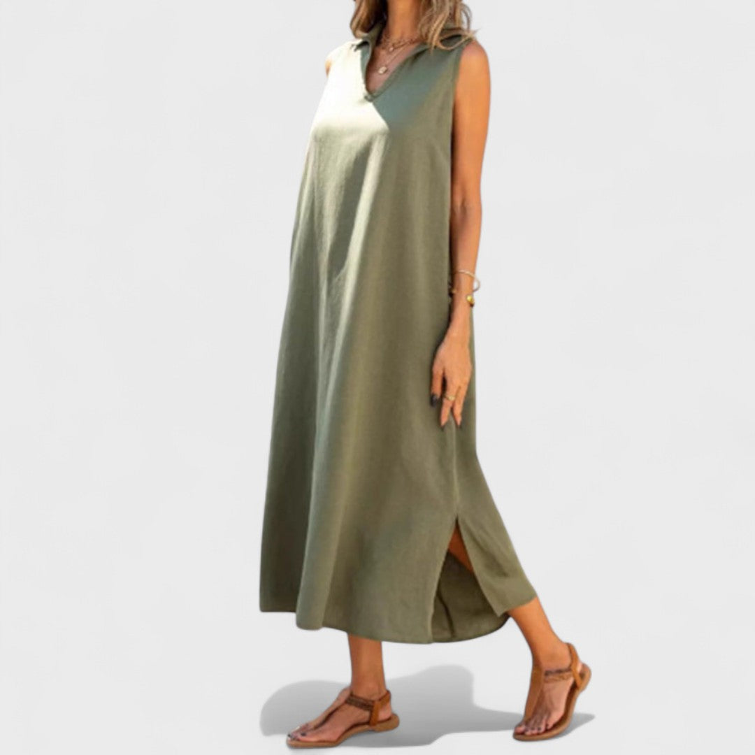 Entdecken Sie unsere Damen Maxikleider ohne Ärmel mit tiefem V-Ausschnitt und Seitenschlitzen, ideal für warme Tage und lässige Anlässe. Diese Kleider kombinieren Stil mit Komfort und können auf verschiedene Arten gestylt werden.