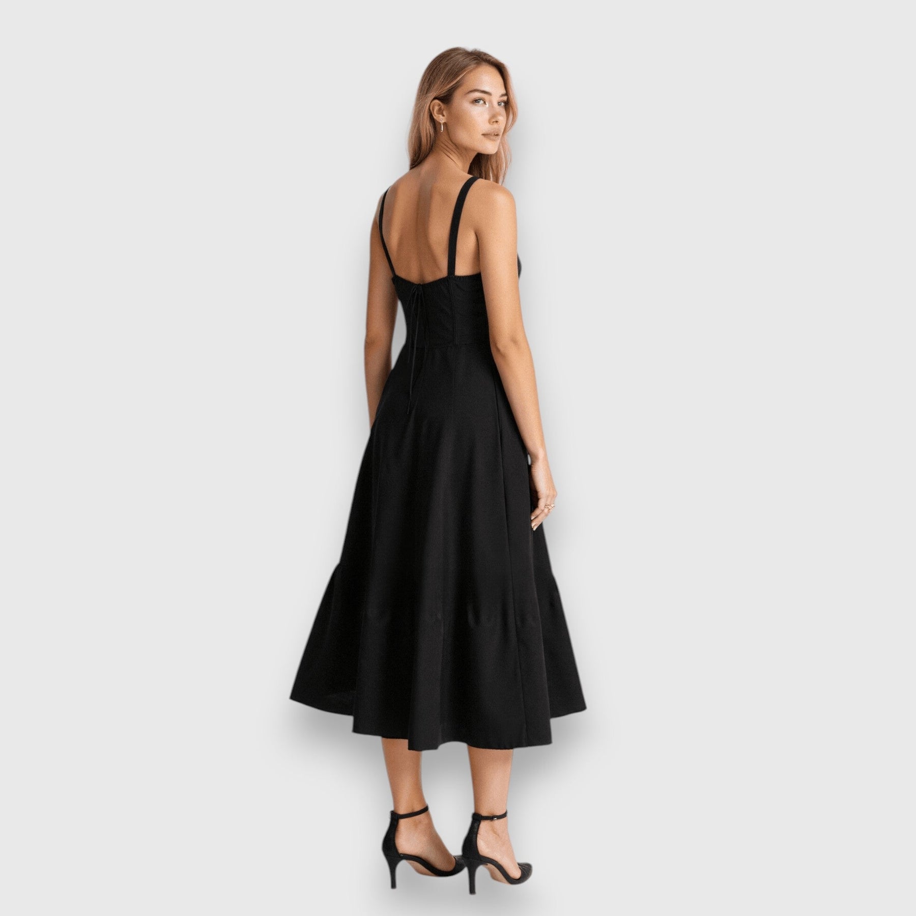 Der Kiana Midi-Rock kombiniert ein eng anliegendes Korsett mit einem fließenden Rock – ideal für stilvolle Anlässe.