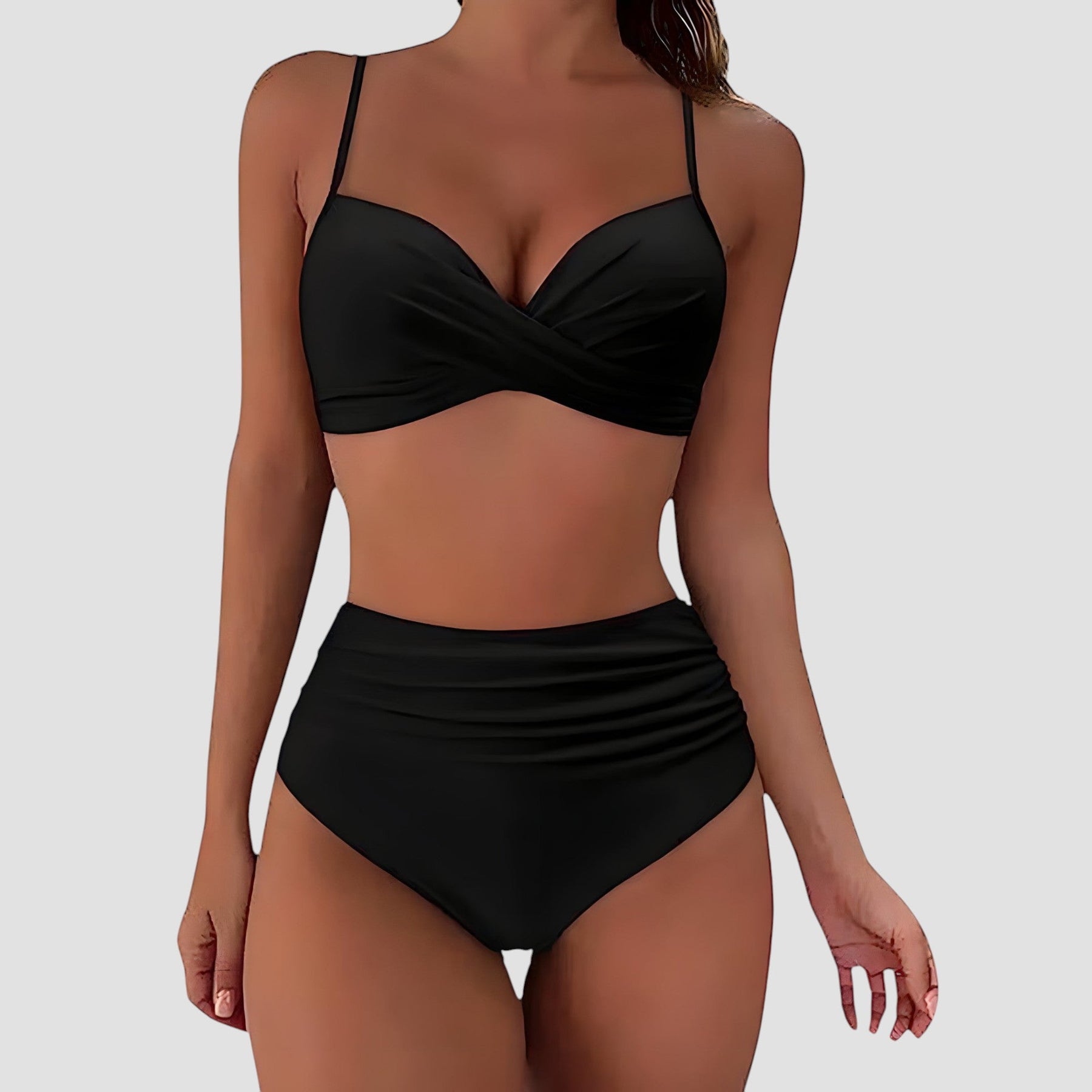 Dieses Badeanzug-Set kombiniert Eleganz und Komfort in einem. Das gekreuzte Oberteil mit verstellbaren Trägern bietet hervorragende Unterstützung und Komfort, während die hochgeschnittenen Höschen deine Figur betonen und dir Selbstvertrauen am Strand geben.