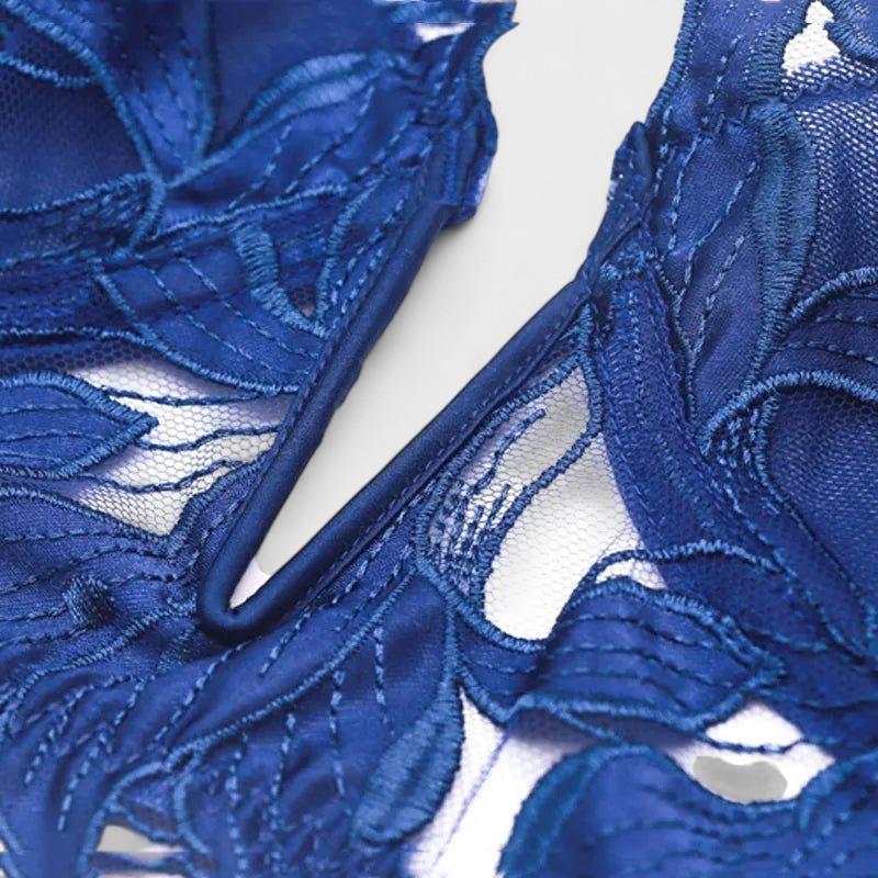 Elegantes und verführerisches Spitzen-Set, das Zartheit, Komfort und unwiderstehliches Design vereint. Der BH mit präziser Spitzenstickerei und raffiniertem Schnitt betont perfekt das Dekolleté, während die Höschen mit sinnlichen Details Ihre Silhouette unterstreichen. Dieses Set ist die ideale Wahl für besondere Anlässe und für Momente, in denen Sie Selbstbewusstsein und Einzigartigkeit spüren möchten.