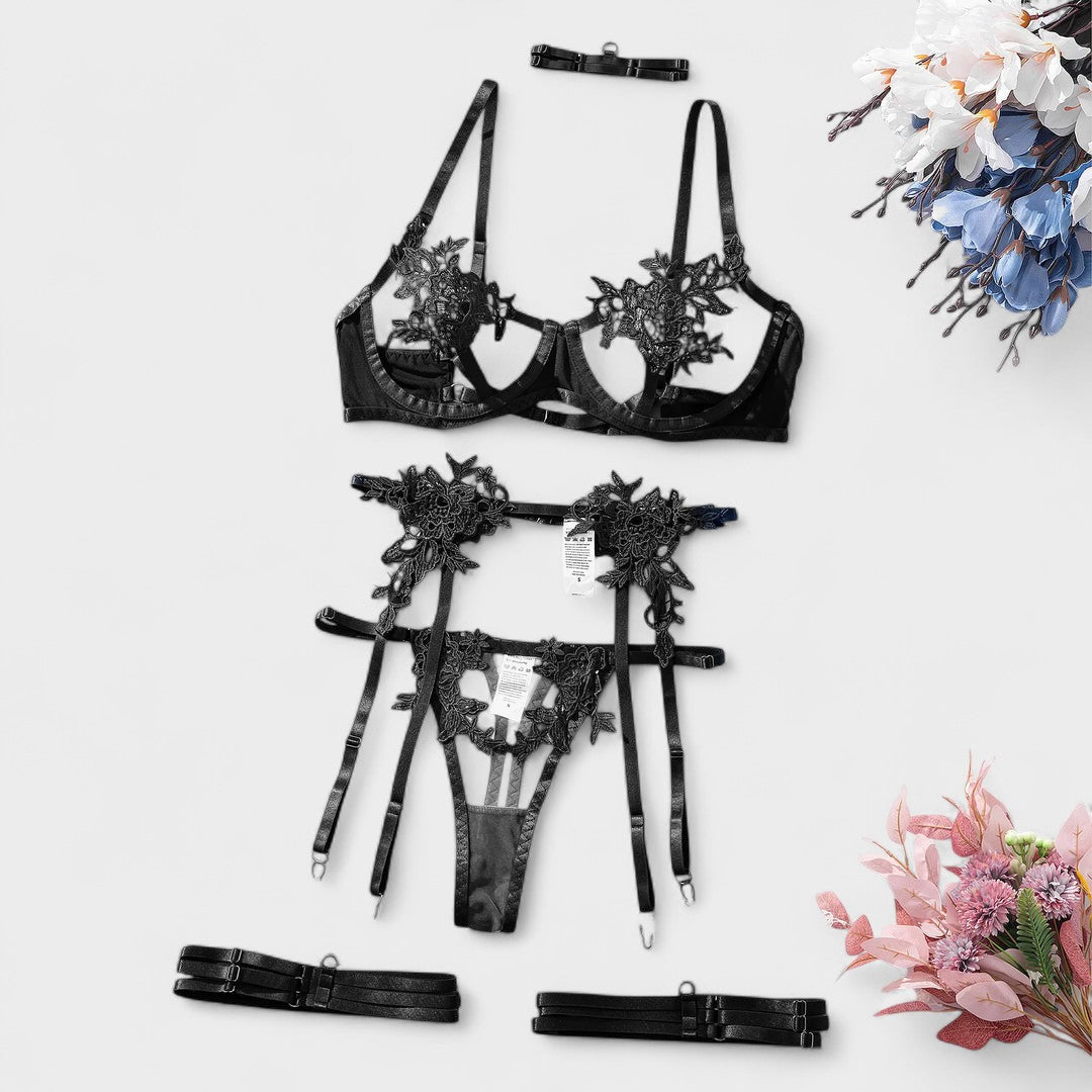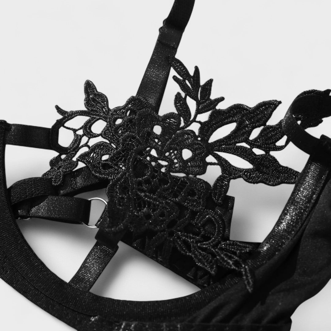 Dieses außergewöhnliche Spitzen-Set ist ein Symbol für Verführung und Eleganz in der gewagtesten Ausführung. Zarte Stickereien in Kombination mit raffiniertem Schnitt lassen Ihre Schönheit erstrahlen und verleihen dem gesamten Look einen Hauch von Luxus. Die ideale Wahl für Frauen, die überraschen, sich besonders fühlen und einen unvergesslichen Eindruck hinterlassen möchten.
